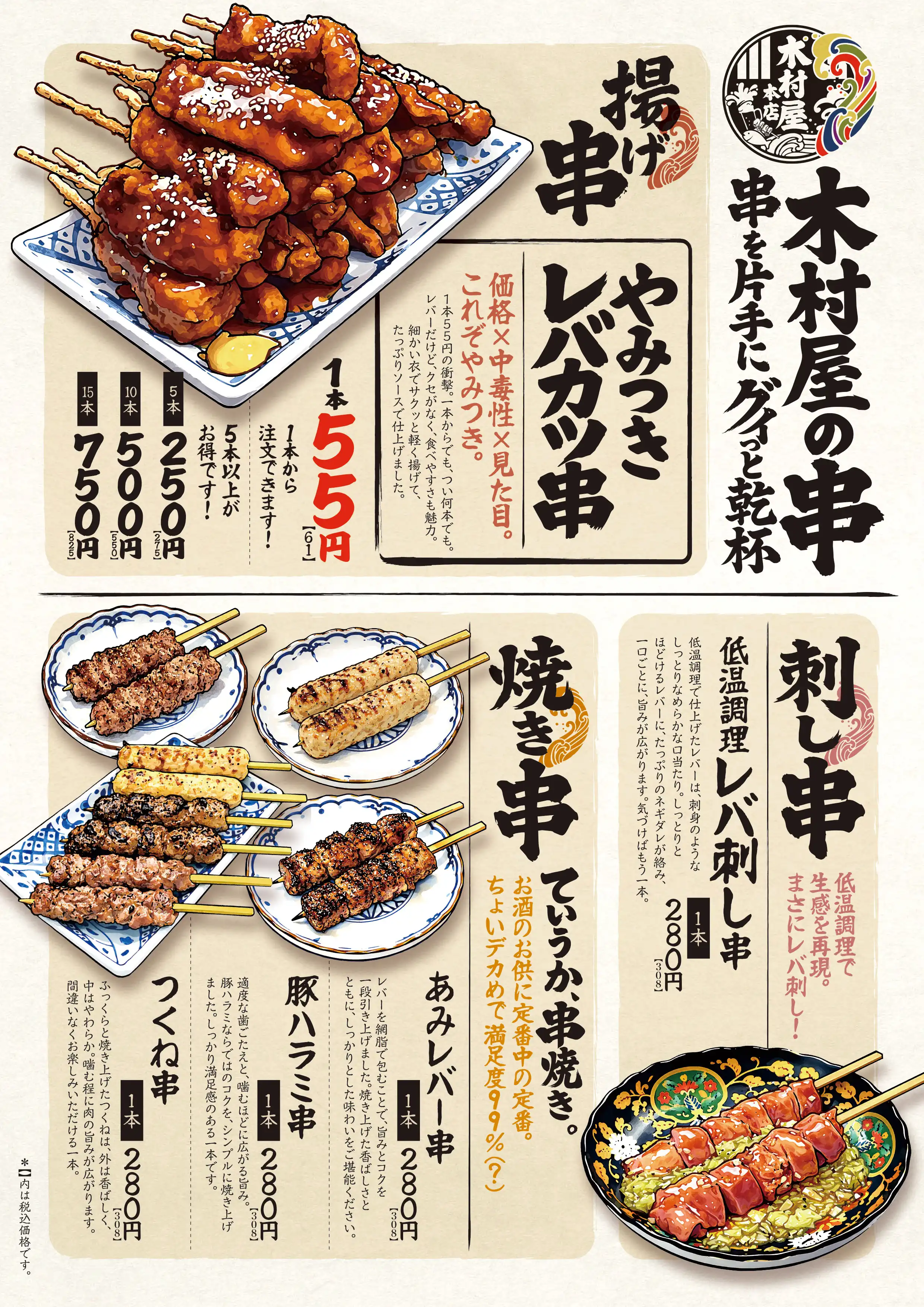 やみつきレバカツ串